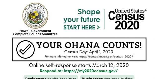A 2020 Census flyer was released by the Hawaii Government Complete Count Committee. Partners are encouraged to use the flyer to promote the upcoming decennial census! View more resources at our 2020 Census page.